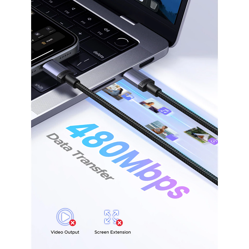 Cáp dữ liệu sạc UGREEN dài 0,5m 100W USB-C sang USB-C USB 2.0 Vỏ nhôm bện không gian màu xám cho SAMSUNG s25 Ultra 24 + s25 + s25 cao cấp
