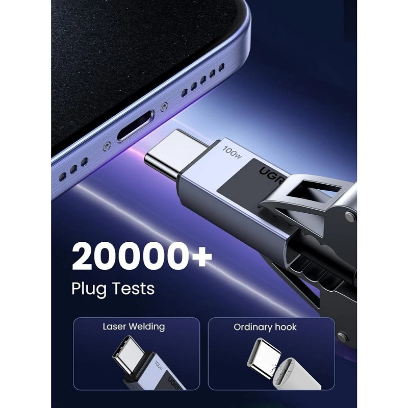 Chất liệu cao cấp độ bền cao: Cáp USB Type-C to Type-C Ugreen 45063 sử dụng công nghệ hàn laser để gia cố giao diện hợp kim nhôm, đảm bảo độ bền cho hơn 20.000 lần cắm và rút; với lớp ngoài bện bằng nylon, sản phẩm linh hoạt và chống rối, bền bỉ và chắc chắn.