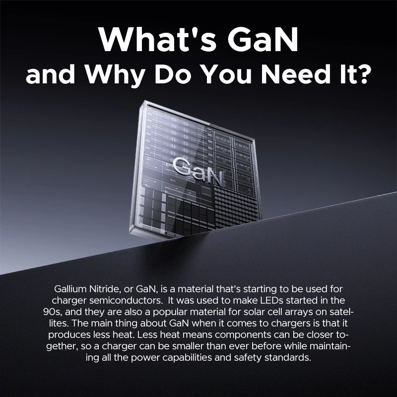 Công nghệ GaN: Gallium nitride là một giải pháp thay thế hiệu suất cao và hiệu quả cho silicon truyền thống được sử dụng trong các thiết bị sạc. Công nghệ GaN tạo ra ít nhiệt hơn và cho phép cung cấp nhiều năng lượng hơn trong một thiết kế nhỏ gọn.