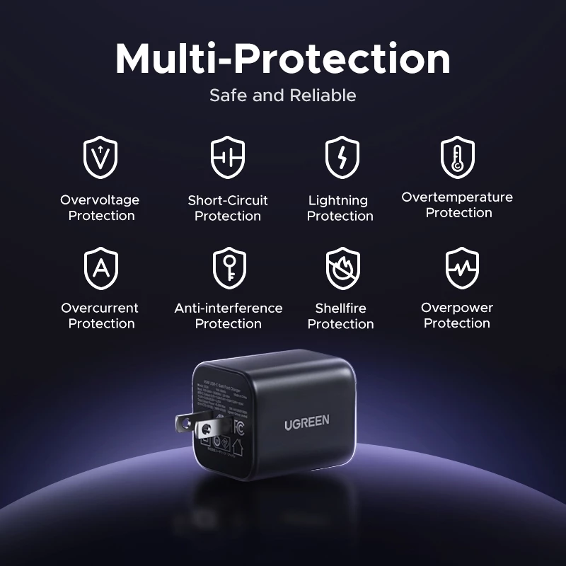 Next-Gen Tech: Công nghệ GaN tăng tốc độ và hiệu quả sạc. Hệ thống Power Dispenser điều chỉnh công suất đầu ra một cách thông minh để bảo vệ pin sản phẩm của bạn. Nhiều hệ thống an toàn cũng bảo vệ các thiết bị khỏi quá nóng, sạc quá mức và quá điện áp.